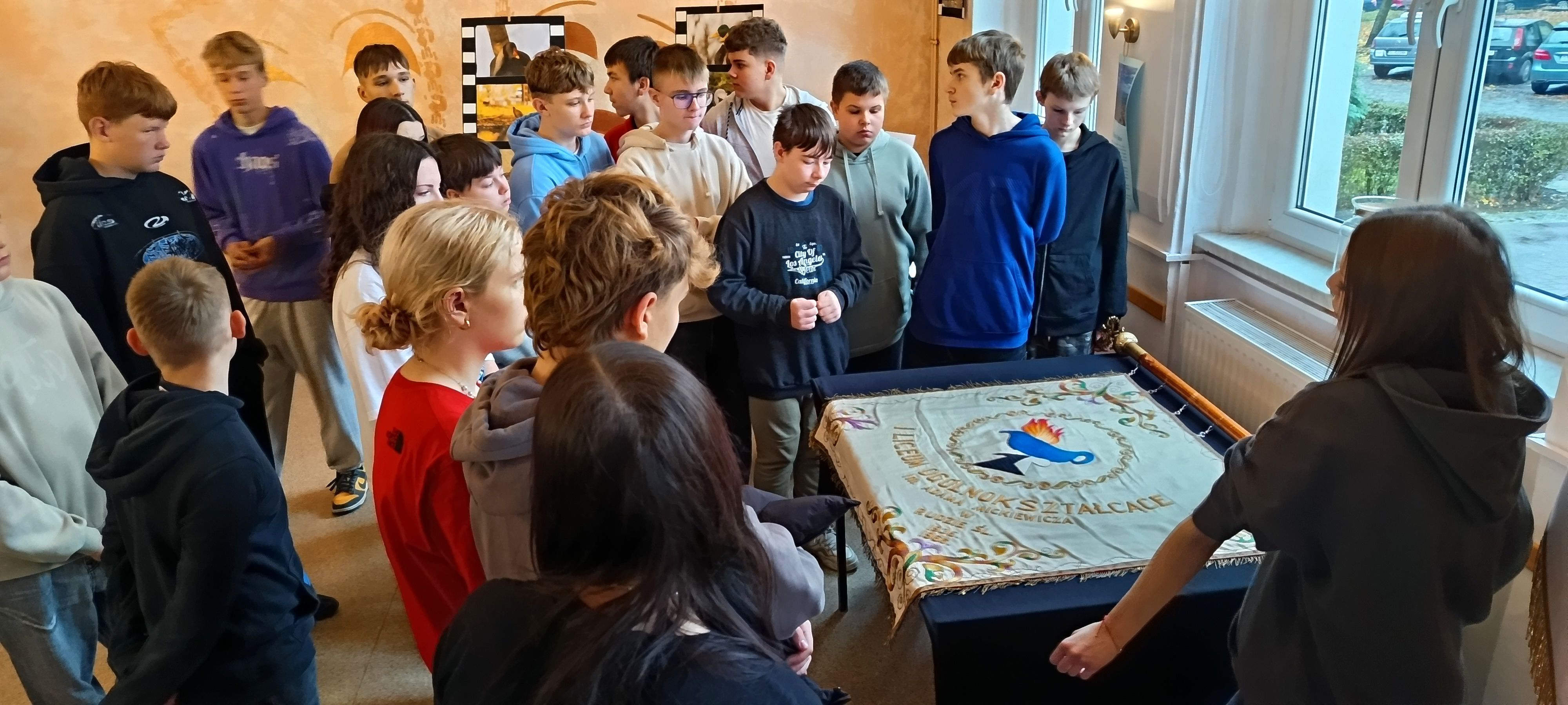 spacer po szkole połączony z poznaniem jej historii oraz dziejów sztandaru,