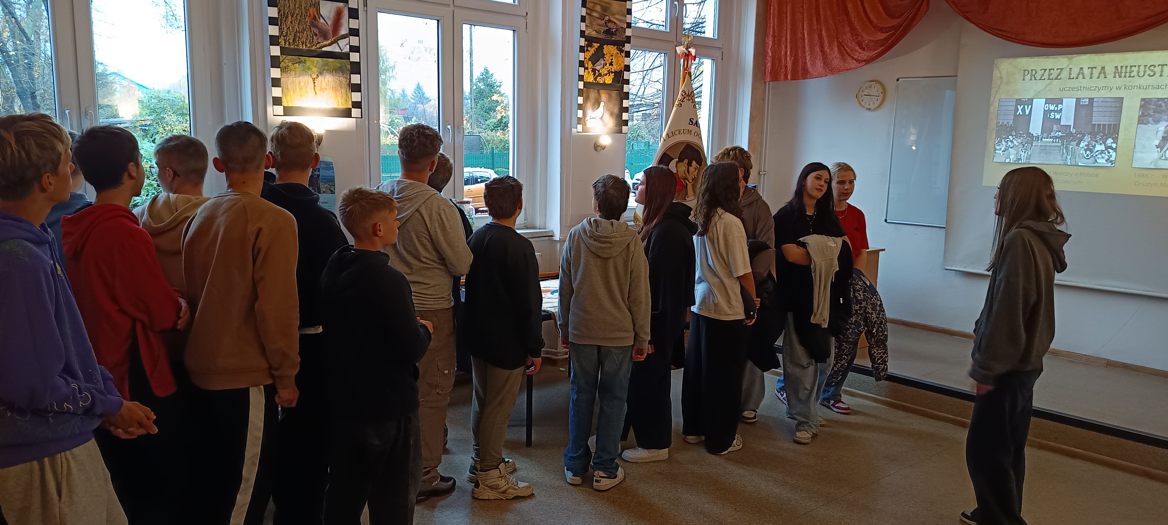 spacer po szkole połączony z poznaniem jej historii oraz dziejów sztandaru,